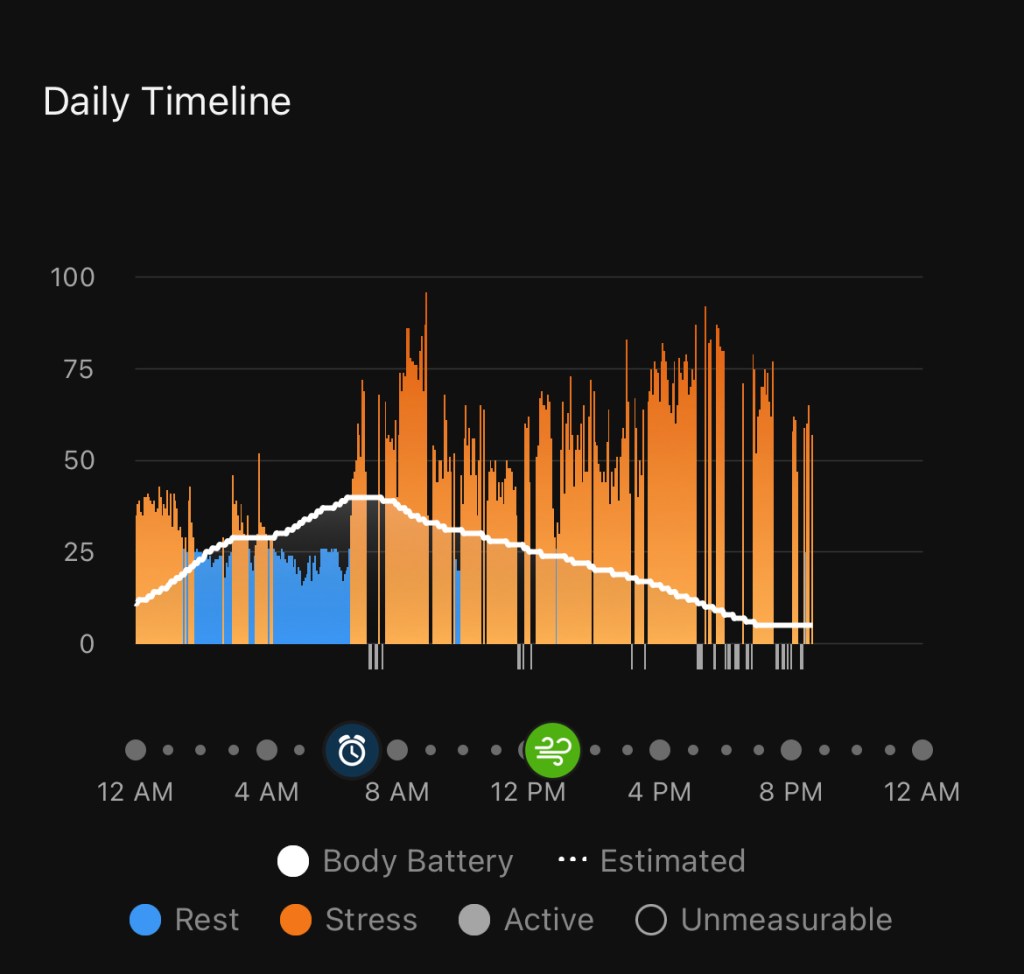 Okay, today was worse. I slept horribly last night. I was tired when I went to sleep, but when my head hit the pillow it was like I just couldn’t fall asleep. I lay awake for what felt like hours. I definitely dreamed, but somehow I still felt awake. And if I woke up in the middle of the night, it was hard to go back to sleep. That’s really annoying for me since I normally sleep like a log. Also, I could feel my heart beating in my chest and I could tell my resting heart rate was higher than normal. Thankfully, my Garmin watch confirmed that for me!
