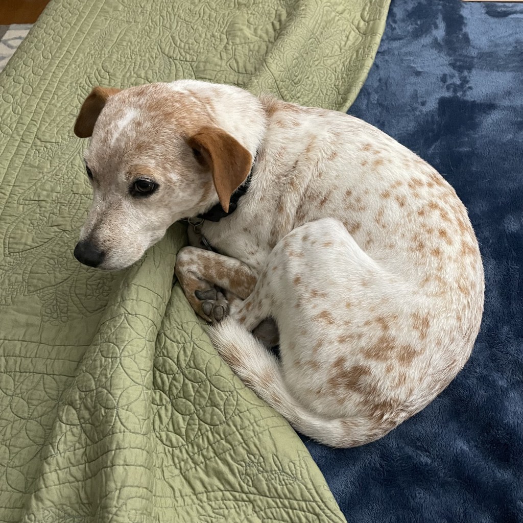 All this stuff aside, we had a moment of excitement this evening. Sean and I noticed Ginny (our dog) rolling around out in the yard. She reserves this activity for only the grossest, stinkiest types of things so we knew whatever it was going to be, it wasn’t going to be pleasant. The last time, she rolled in a bunch of animal poop. This time is was a dead animal! Yuck! Probably a mole or some other small critter (it was hard to tell). Of course, she got a nice bath and Sean thoroughly disinfected her. Now she’s a sweet-smelling, fluffy bunny dog.