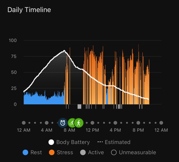Last fall I bought a Garmin Fenix 6S and I have really loved it. I used to have an Apple watch and before that I used one of the Fitbits. The Fenix tracks a variety of health metrics including my heart rate, resting heart rate, sleep, pulse oxygenation and respiration. Then it has these propriety algorithm metrics like stress and body battery. Stress is calculated by measuring your heart rate variability and processing it through some algorithm to tell you a relative measure of your stress at any given moment. The body battery is a measure of the level of energy in your “tank” and it goes up or down based on your stress, rest, etc. The watch also tracks your performance metrics – things like your VO2 max, power thresholds, etc. Those metrics tend to be the things you use for more specific sports training.