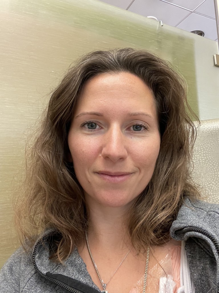 I was unfortunately in a windowless room today. Maybe I didn’t show up early enough or something. Or maybe my transfusion isn’t quite as long as some other people’s so they prioritize them for window seats. But I’m mostly thankful that my day went quickly and we got out of there on the earlier side. My whole ordeal was done by 2:45 PM. If I didn’t do the scalp cooling, I would have gone home around 1 PM. But if I keep most of my hair and the hair I lose grows back faster, then it will have been worth it.