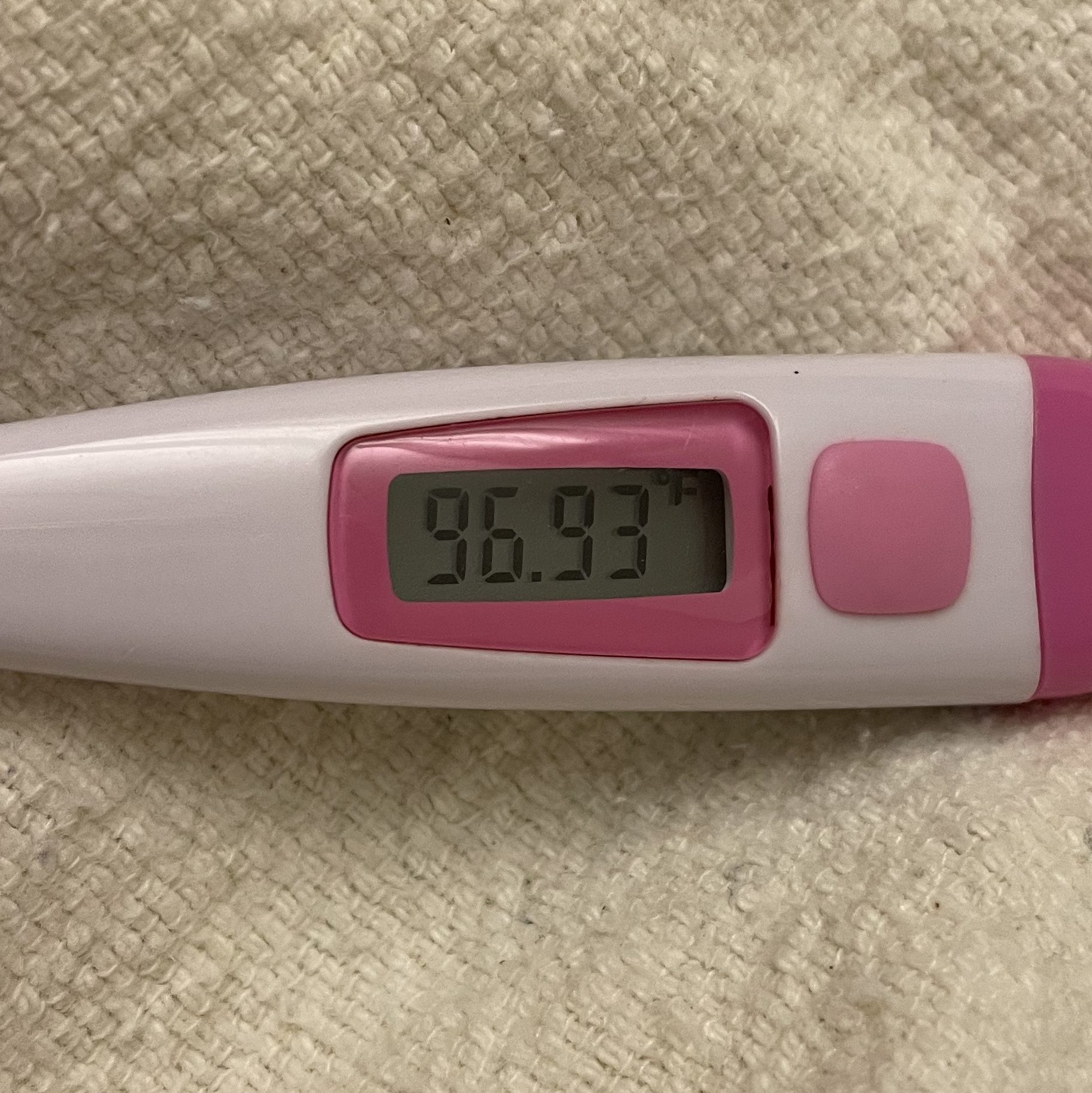 Also, I did remember to bring my thermometer this time! As you can see from the picture progression, my starting oral temperature was 97.90 right before I put my cap on. By the end of my Taxol infusion, my oral temperature was down to 96.93. So that means my body temperature dropped about a degree during the whole cooling period. After my infusion was over, I did try to warm up some with hot tea. My mom also gave me her furry sweatshirt to wear which helped to keep more warmth in my neck, shoulders and back.